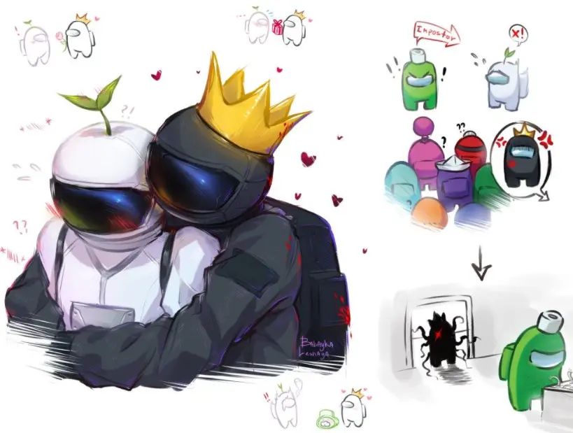 A continuación os dejamos una selección de los mejores Fanarts de Among Us que hemos encontrado. Todos y cada uno de estos fanarts de Among us ofrecen un talento impresionante, pues sus autores se han tomado el tiempo de expresar su arte con mucho cariño para que la comunidad de fans pueda disfrutar de estas imágenes tan agradables.